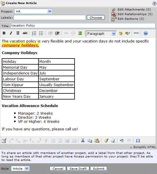 The Add New Article is a zero footprint, WYSIWYG publishing and editing tool. WYSIWYG rich text controls appear in Microsoft Internet Explorer, Firefox and Safari family browsers. Other browsers can still use the form, without the additional controls.