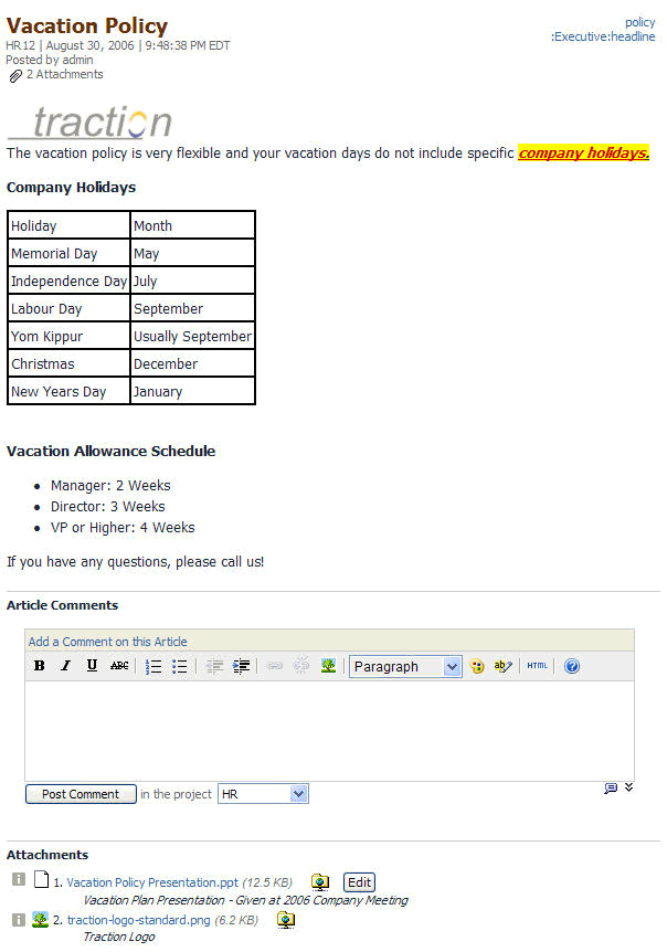 Copying Images from your browser: You can copy and paste images from your browser into this form. Rather than simply referencing and displaying the images, Traction will download, attach, and internally reference the image. This applies to sites that are not password protected.