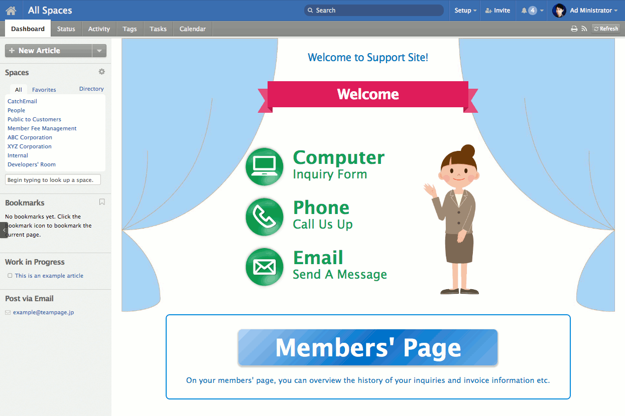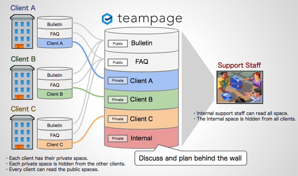 Let me introduce how TeamPage allow us to build a client support site with private and public spaces.