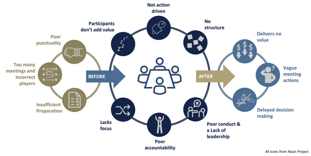 Invariably, meetings are essential and if they are inefficient or serve no purpose, then they carry a hidden cost to the business. Therefore we MUST refine and improve them continuously to ensure that we extract maximum value from them.