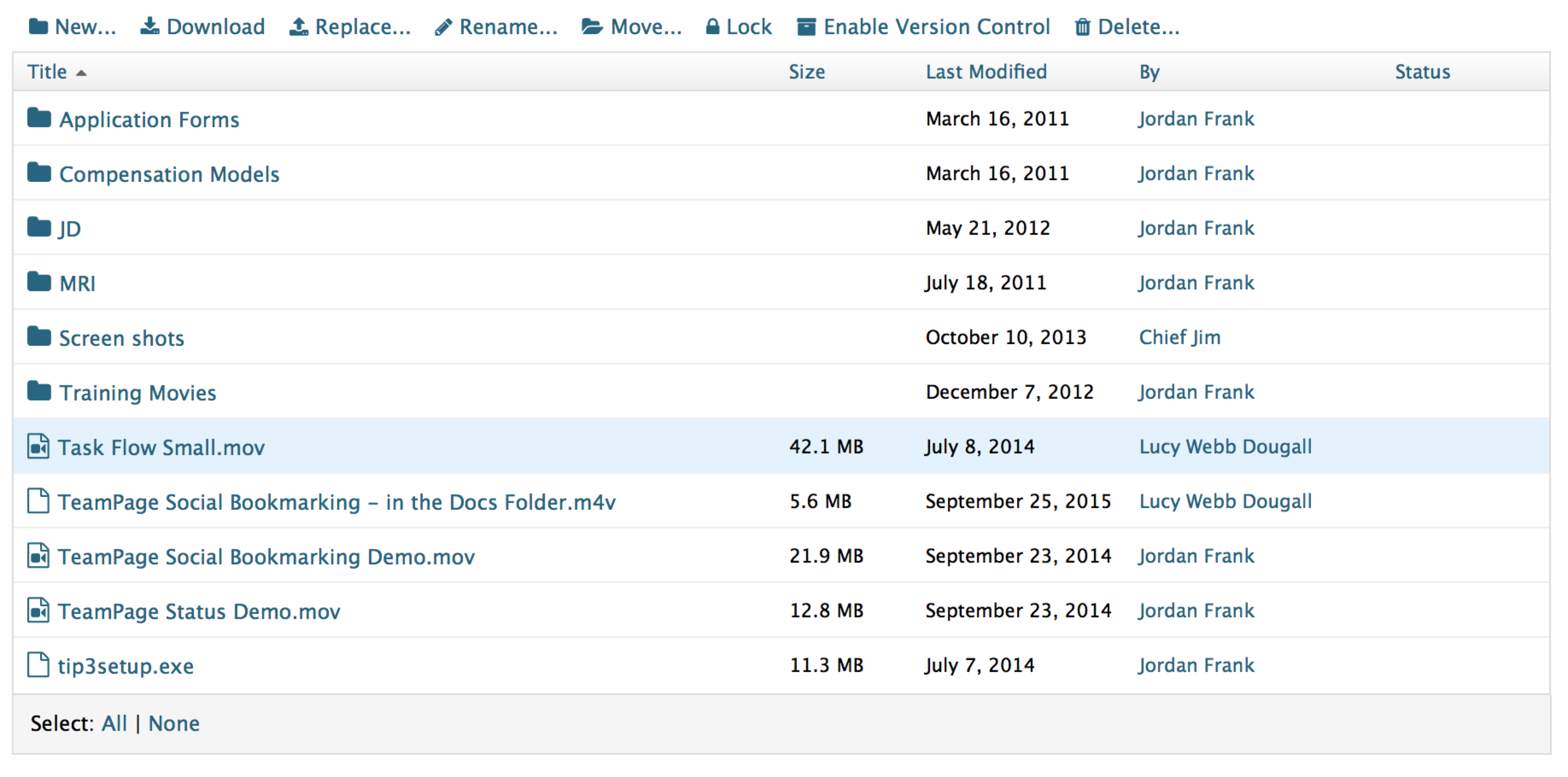 TeamPage's document management interface has been revamped, and now supports a native move feature for moving files and folders.
