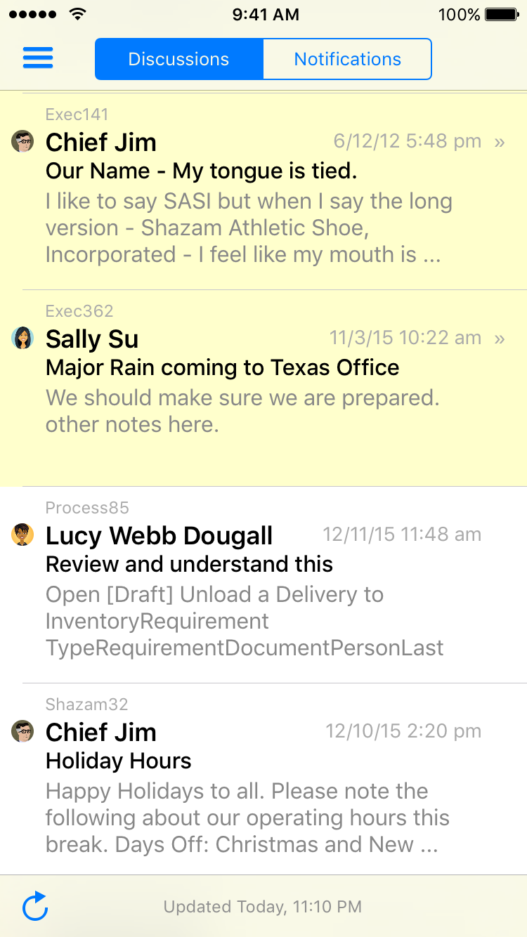 The free TeamPage app lets you review TeamPage discussions and notifications, tracks what you have read, and lets you add items to your worklist and reply via email. It also supports offline reading and replying to downloaded content. It's a handy way to keep up with activity in TeamPage using your iPhone or iPad when you're away from your desk. See TeamPage iOS Application and Chris Nuzum's blog post for details and examples. You can download the free TeamPage App from Apple's iOS App Store.