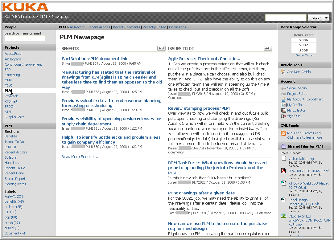 A detailed case study on KUKA Systems titled A Solution for Managing (and Maximizing Change) (login required) is published at Intranets Today.