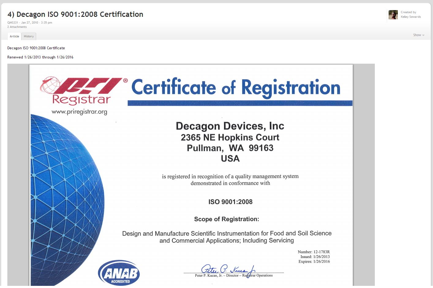 Decagon Devices recently completed a three year renewal of their ISO certification. Their certification recognizes “their quality management system demonstrated in conformance with ISO 9001:2008.